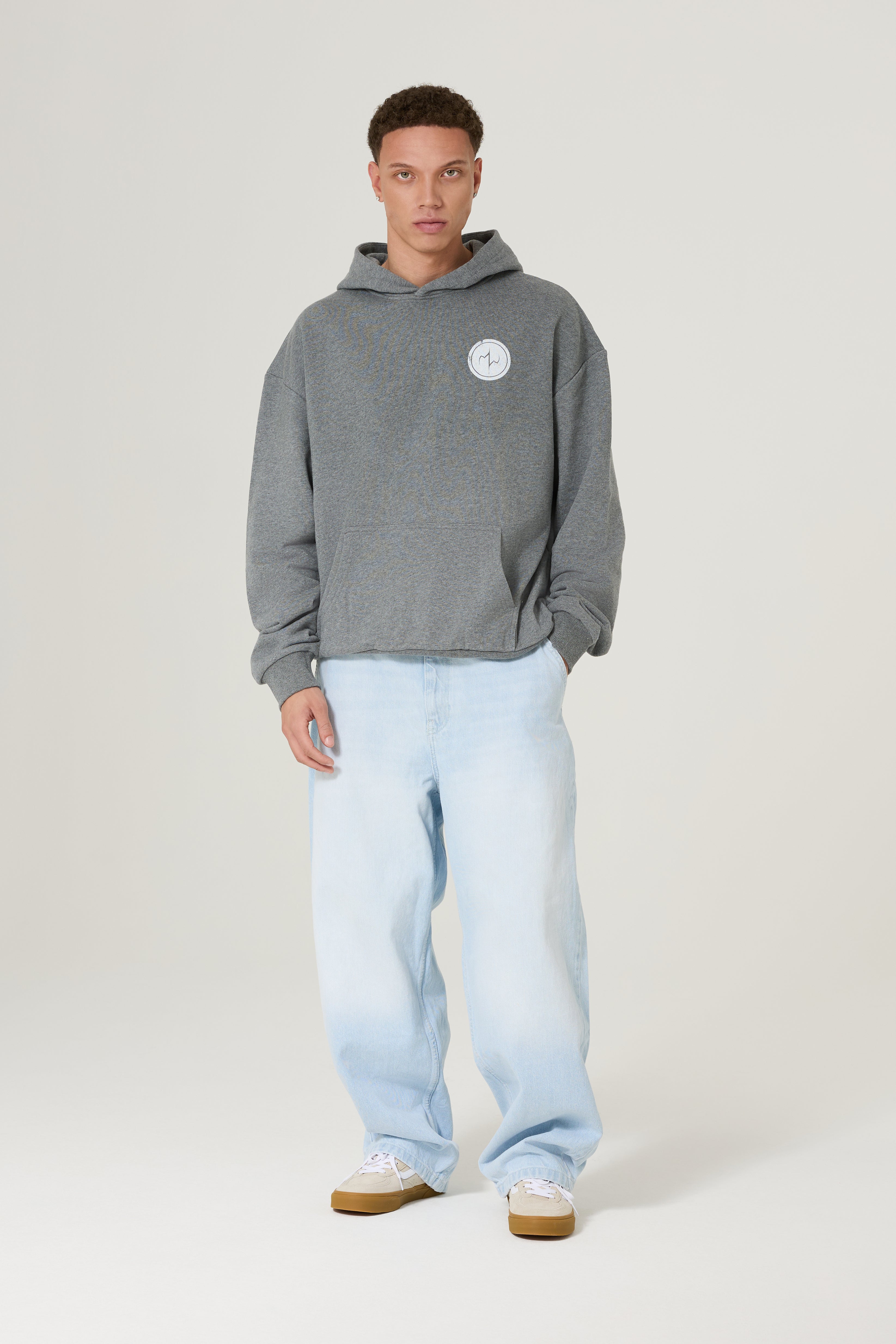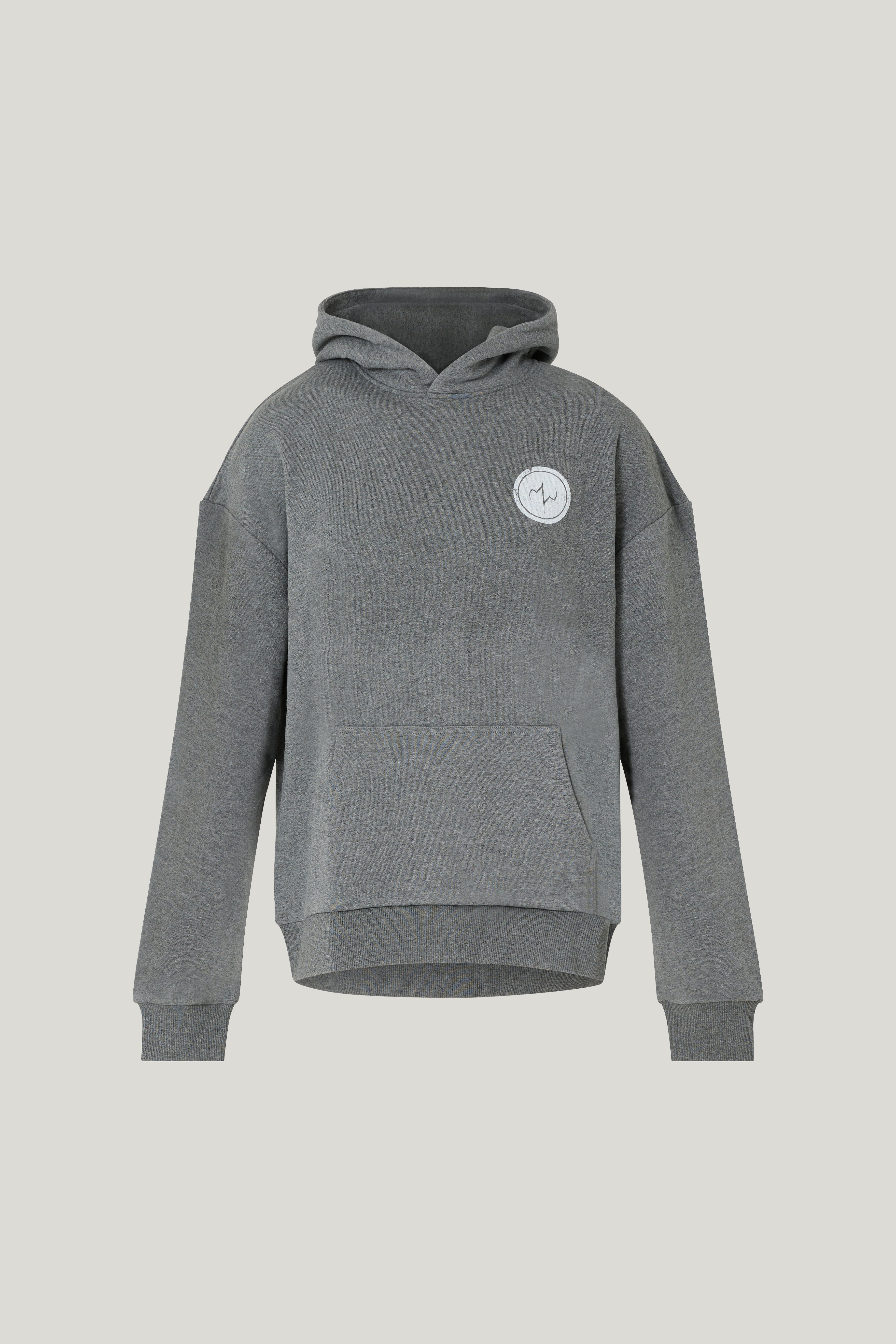 This gray hoodie made of 100% cotton features a loose, oversized fit and a comfortable fit. It features a subtle logo on the chest and a large "AESTHETIC" print on the back. Part of the exclusive Reach Maximum Aesthetic collection.